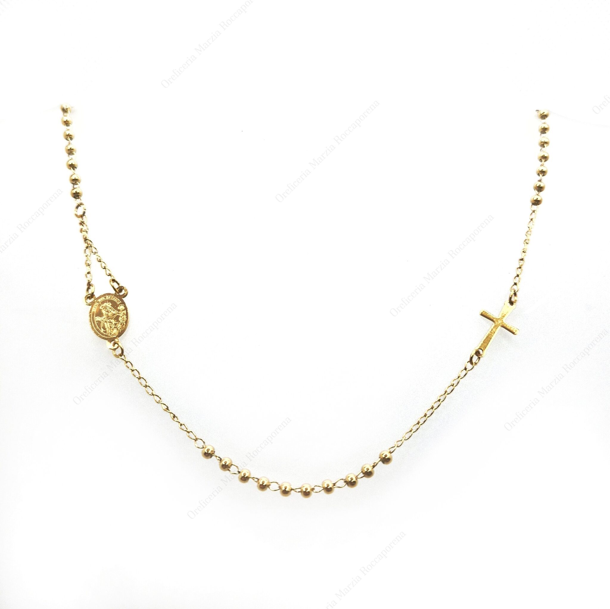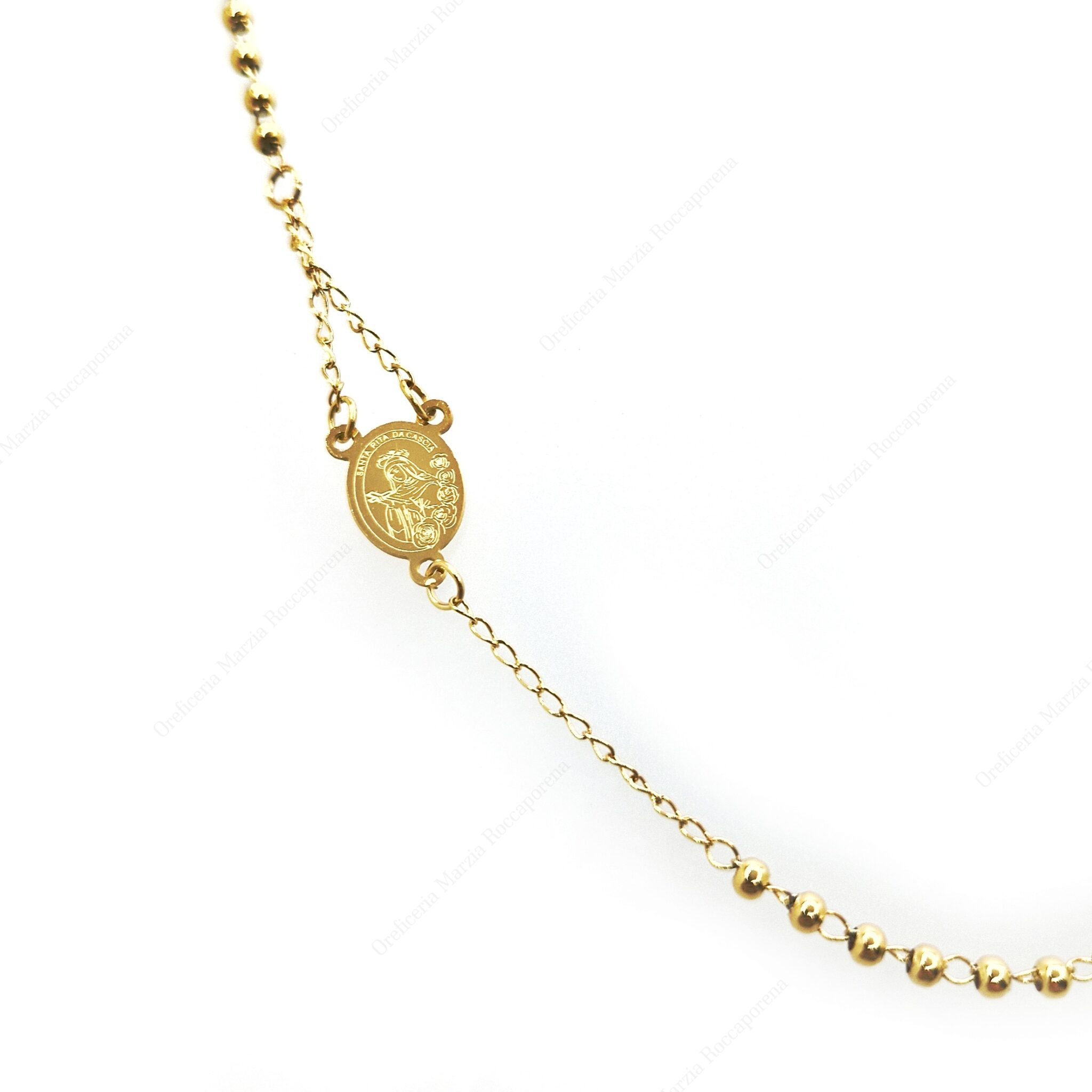 Collana rosario in acciaio dorato con Santa Rita